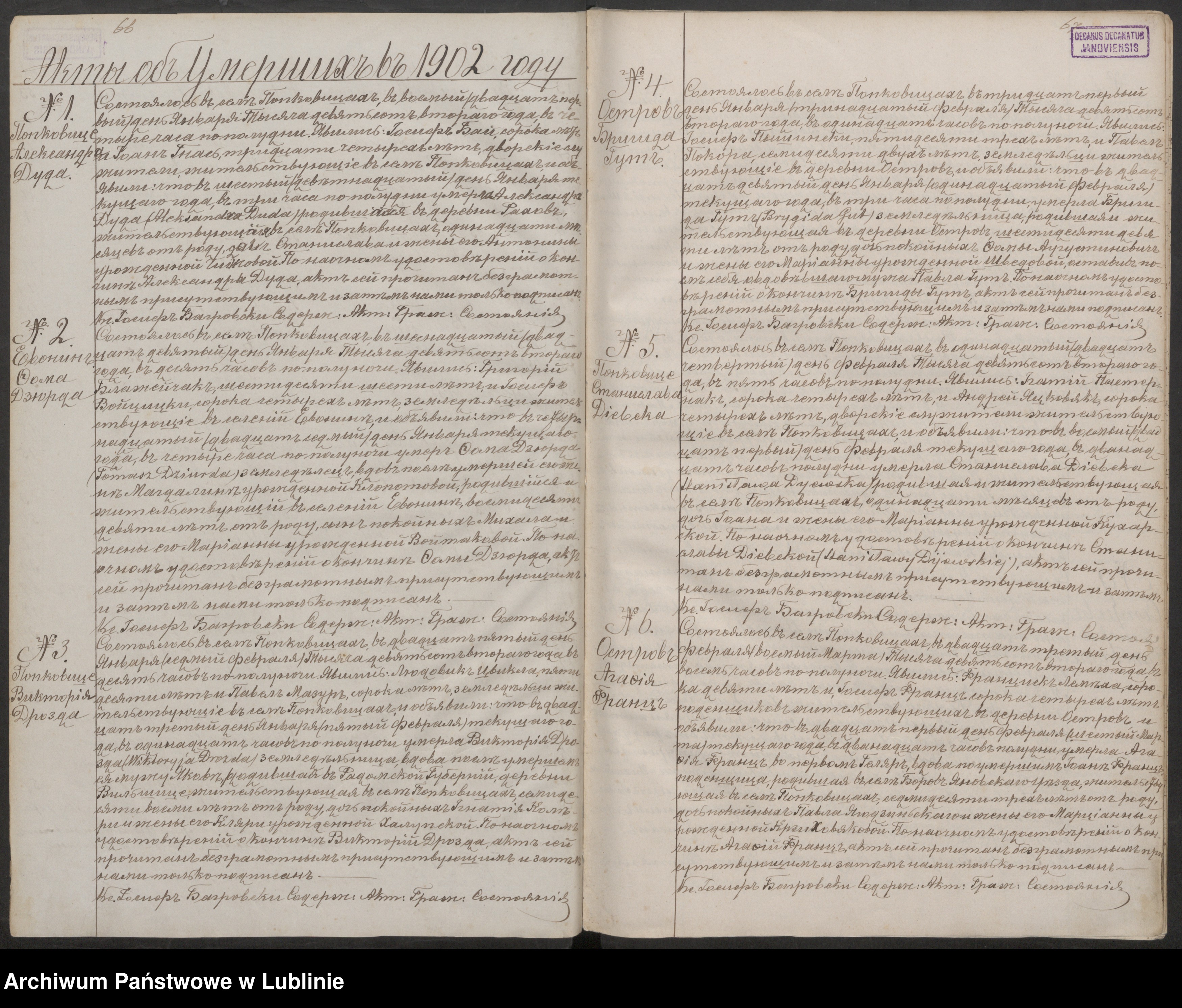 Żuber Ignacy Dziurda Marianna Popkowice 4 1912 On – O: Andrzej M: Zofia Oleszko; Ona – O: Wawrzyniec M: Katarzyna Krawczyk
